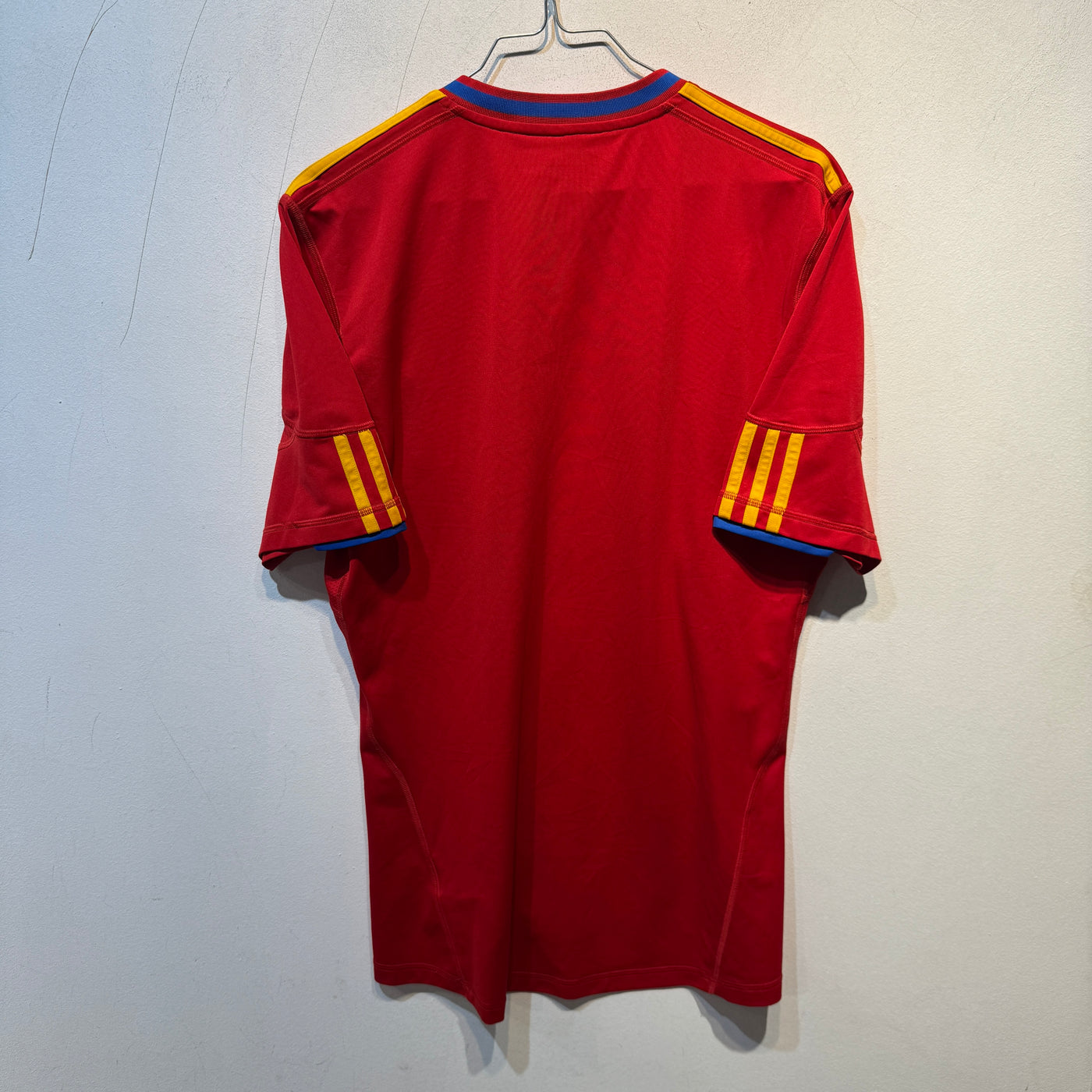 Authentic adidas Spain national team home shirt from the iconic 2010–2011 season. Features embroidered crest and adidas logo, classic ClimaCool fabric, and period-correct detailing from Spain’s historic World Cup–winning era. Adult size M.